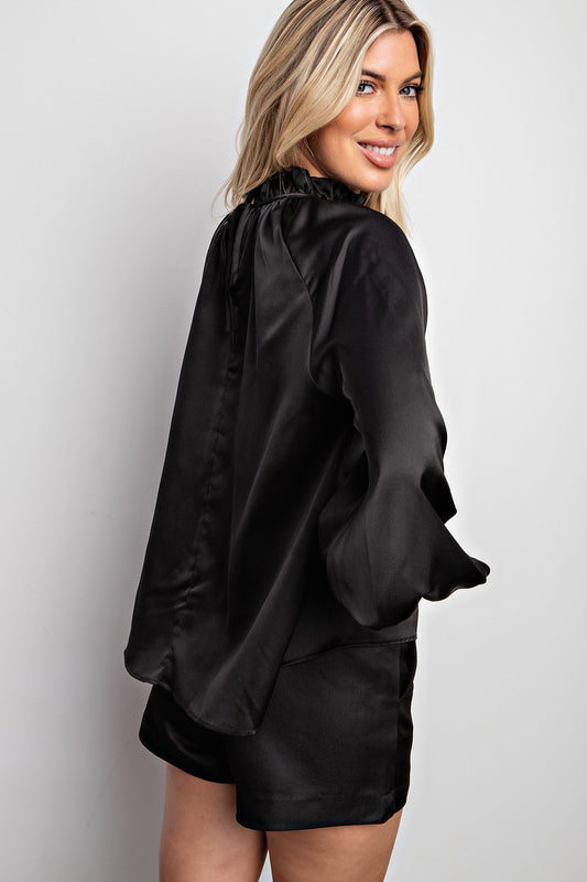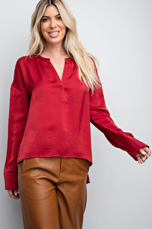 Floral Patchwork Shirred Cuff Buttoned V Neck Blouse