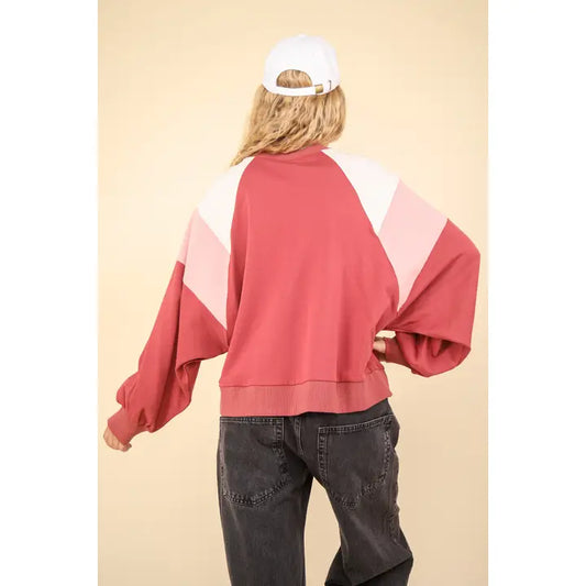 Color Block Raglan Sleeve Comfy Knit Sweat Shirt Top