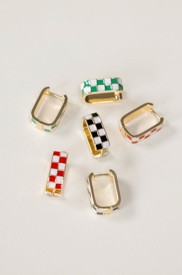 Embrace the unique style of Danielle's Gameday, a product of TLD Designs. These are gold-plated, biggie style checkered earrings, crafted to enhance your look. As a part of our huggie earrings collection, they're a testament to our brand's evolution from solely creating leather earrings to offering diverse jewelry options. These earrings represent our commitment to emerging trends, ensuring you're always in vogue.