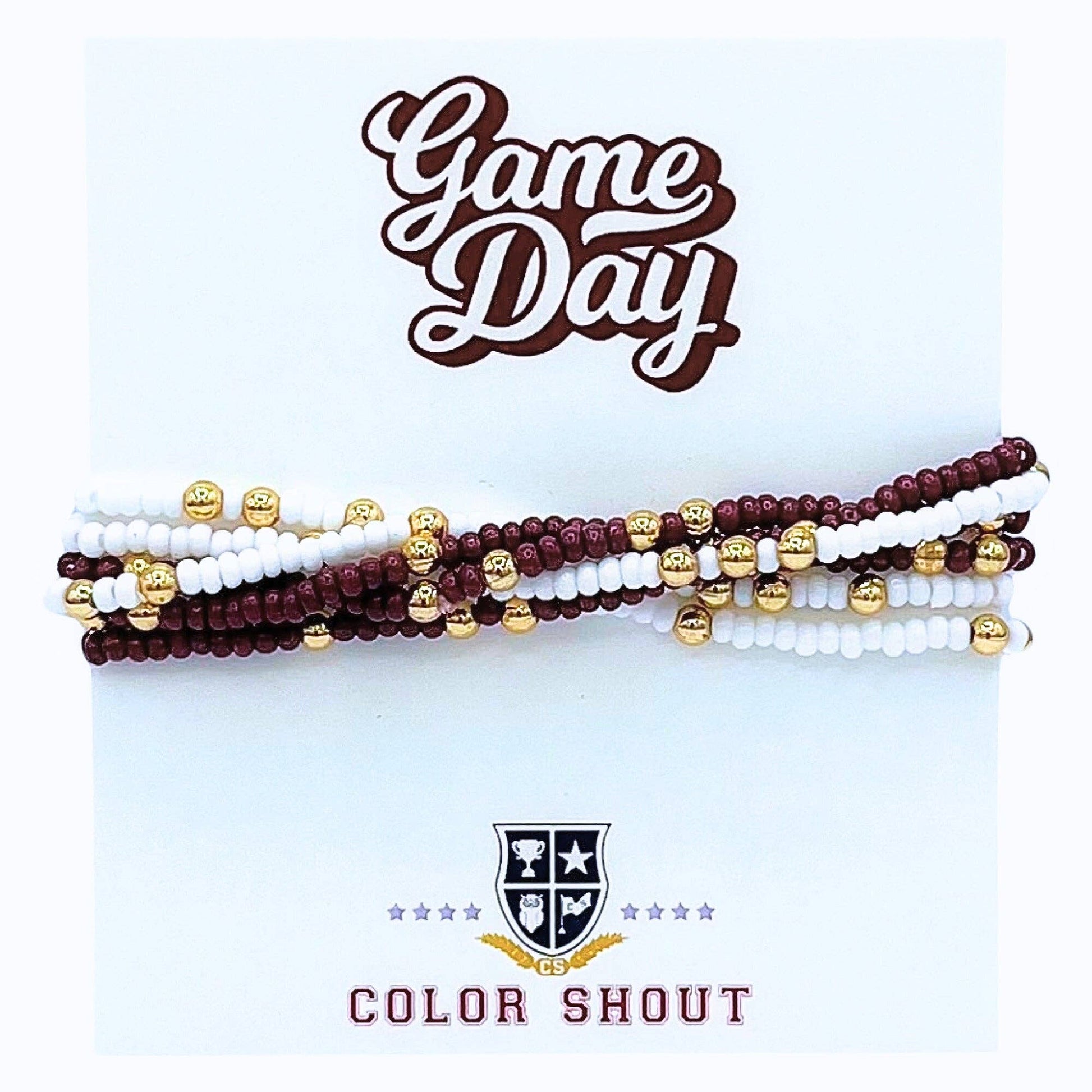 Game Day Team Colors: Set of 6 Stretch Bracelets: Maroon/White