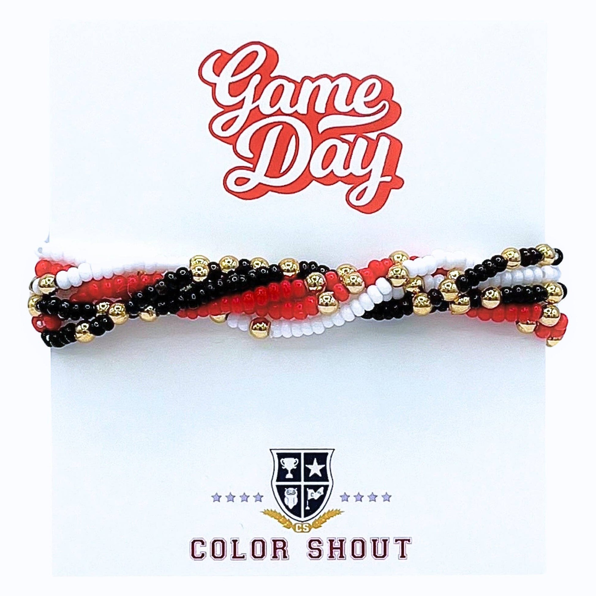Game Day Team Colors: Set of 6 Stretch Bracelets: Red/White