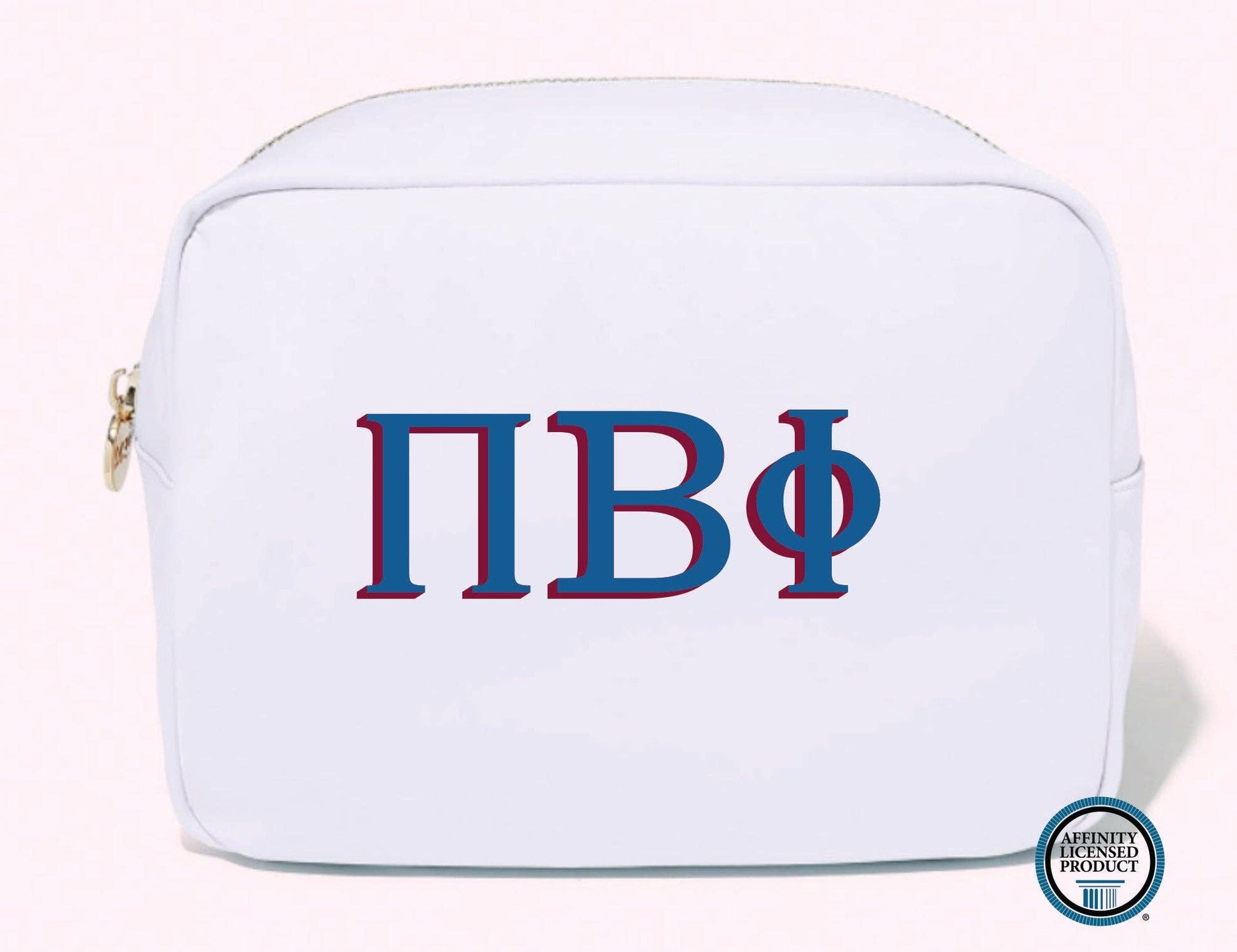 Sorority Greek Cosmetic Bag is the perfect gift for someone or a happy gift for yourself! This large zipper pouch features screen printed Greek letters for easy cleaning. Great for Skincare, accessories, jewelry + cosmetics.